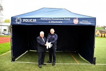 Starosta Miechowski Jacek Kobyłka przekazał namiot wraz z odblaskami podczas kwietniowego gołczańskiego Turnieju Bezpieczeństwa Drogowego. Za wsparcie dziękował komendant poinsp. Jacek Rosół. Podkreślał, iż akcesoria te będą służyć podczas rozmaitych akcji i festynów na Miechowszczyźnie, w trakcie których miechowscy policjanci będą uświadamiać dzieci i młodzież w zakresie bezpieczeństwa ruchu drogowego.