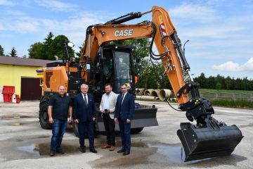 Za łączną cenę brutto: 1 131 866,87 zł na potrzeby prac prowadzonych przez Zarząd Dróg Powiatowych w Miechowie zakupiona została fabrycznie nowa koparka obrotowa Case CNH Industrial model WX155E SR wraz z osprzętem to jest: